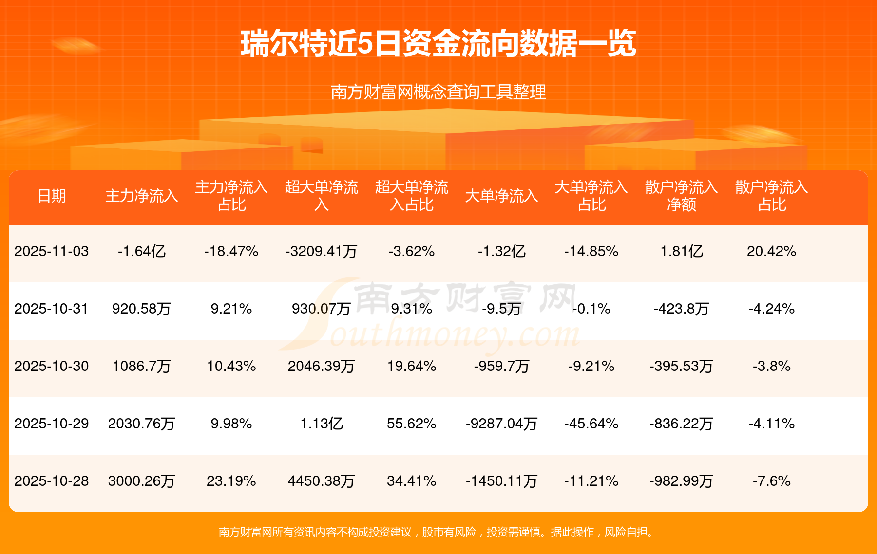 11月3日该股主力净流出1.64亿元,超大单净流出3209.41万元,大单净流出1.32亿元,中单净流出1722.85万元,散户净流入1.81亿元。