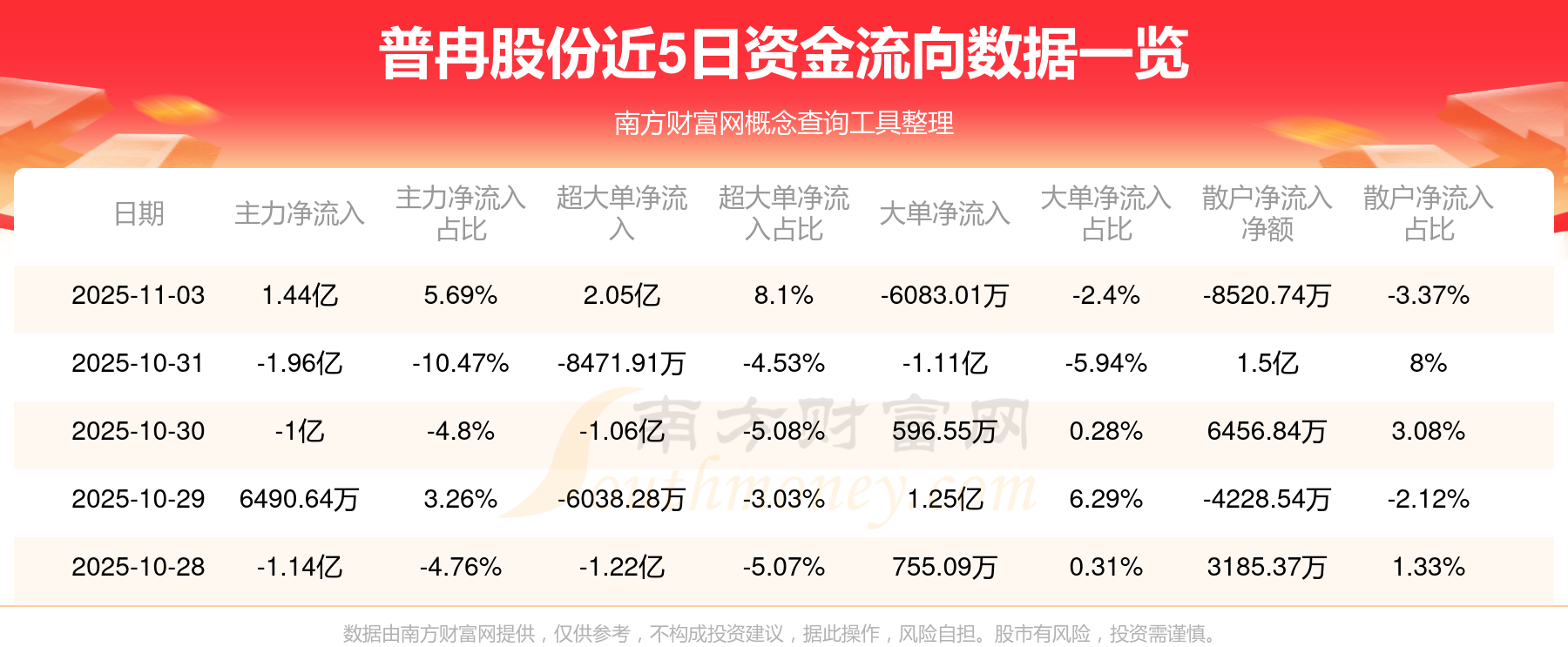 11月3日消息,普冉股份主力净流入1.44亿元,超大单净流入2.05亿元,散户净流出8520.74万元。