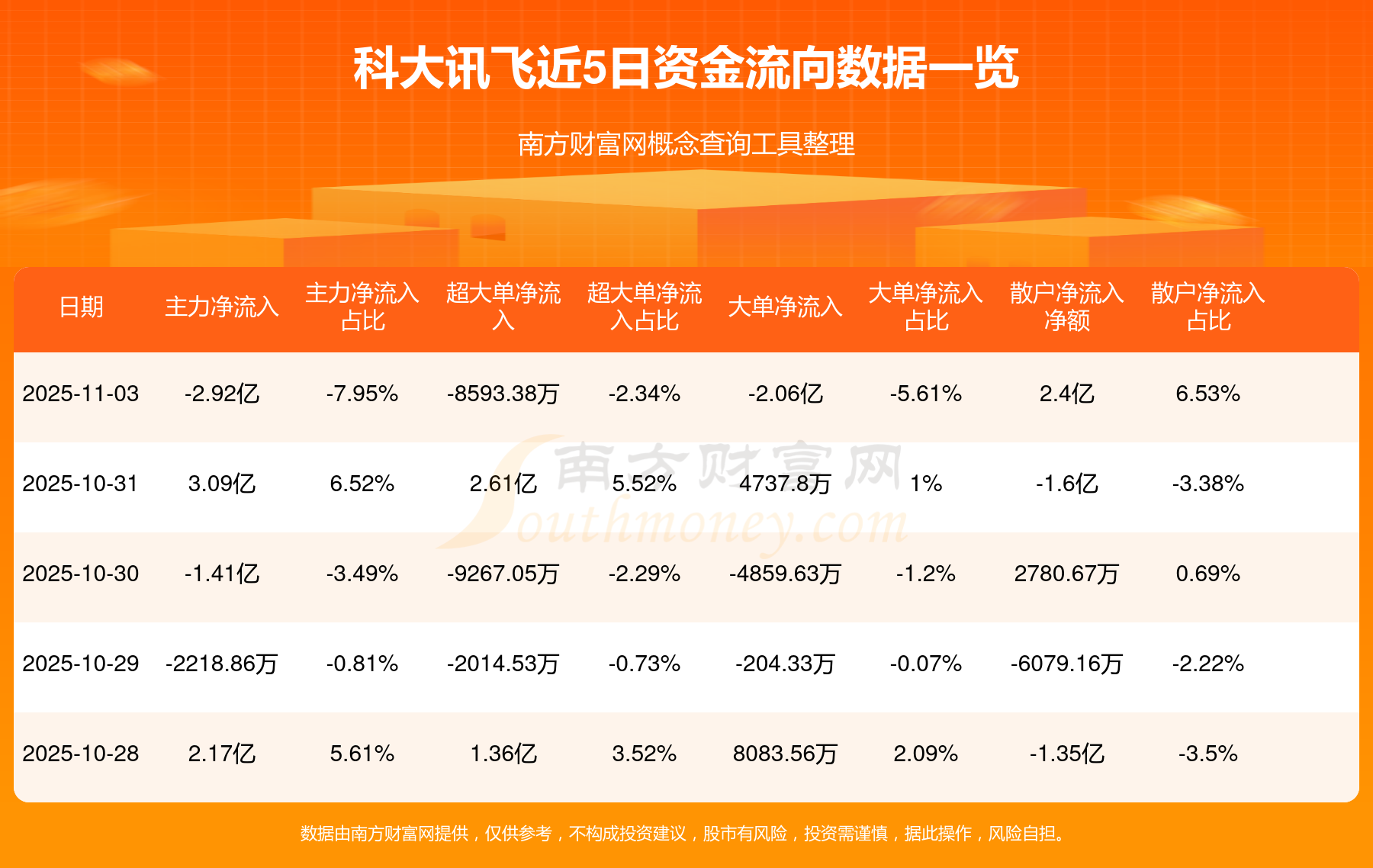 11月3日该股主力净流出2.92亿元,超大单净流出8593.38万元,大单净流出2.06亿元,中单净流入5182.5万元,散户净流入2.4亿元。