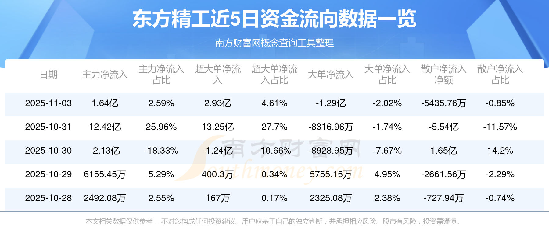 11月4日尾盘消息,东方精工最新报21.410元,成交量2.85亿手,总市值为260.62亿元。