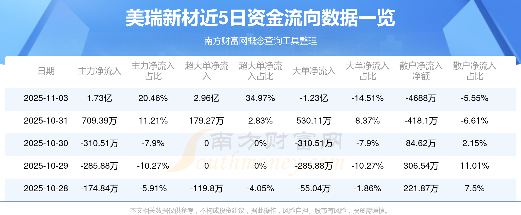 资金流向数据方面,11月3日主力资金净流流入1.73亿元,超大单资金净流入2.96亿元,大单资金净流出1.23亿元,散户资金净流出4688万元。