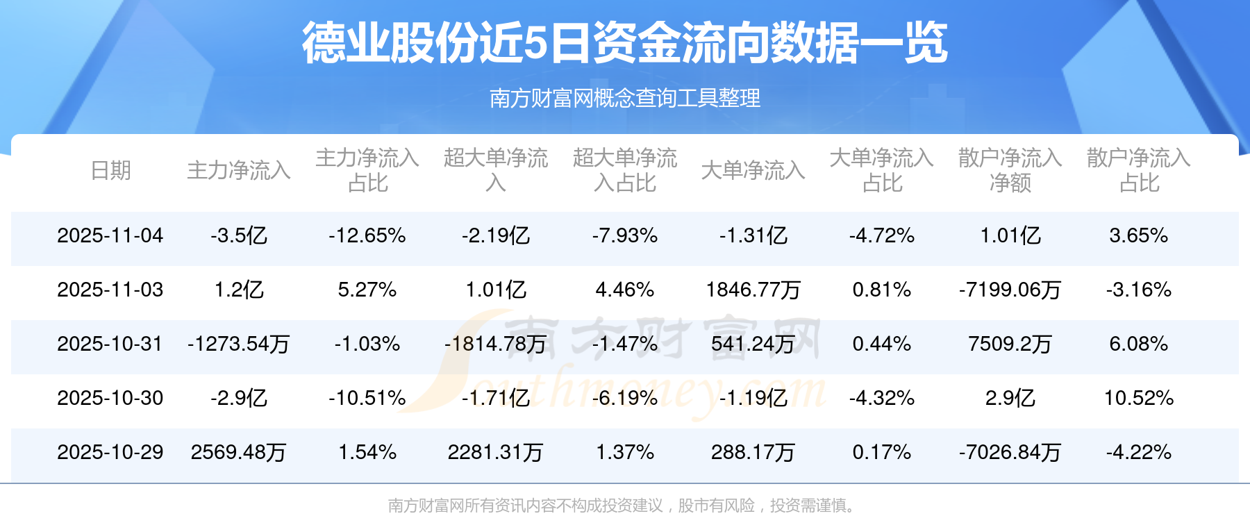 11月4日消息,德业股份资金净流出3.5亿元,超大单资金净流出2.19亿元,换手率3.75%,成交金额27.67亿元。