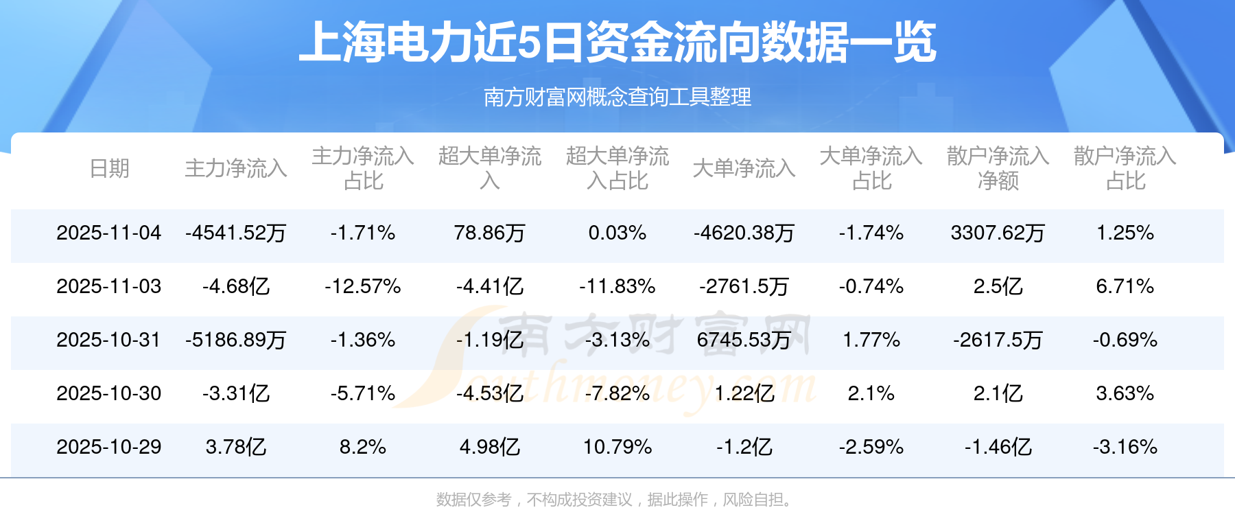 11月4日消息,上海电力主力净流出4541.52万元,超大单净流入78.86万元,散户净流入3307.62万元。