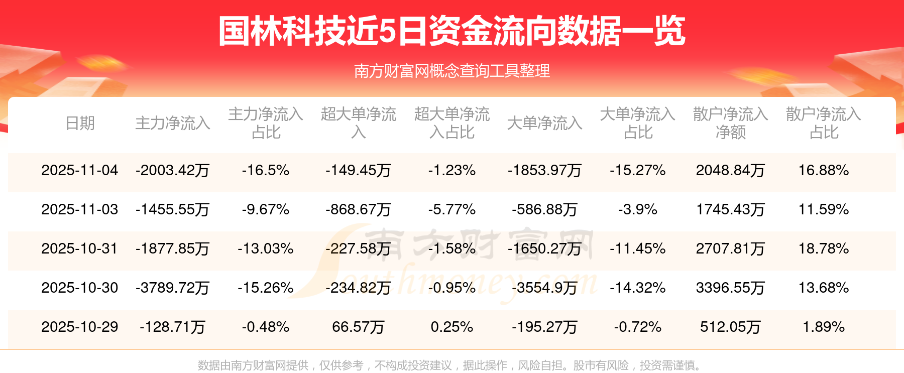 11月3日消息,国林科技资金净流出-2003.42万元,超大单资金净流入-149.45万元,最新报16.540元,换手率4.99%,成交总金额1.21亿元。