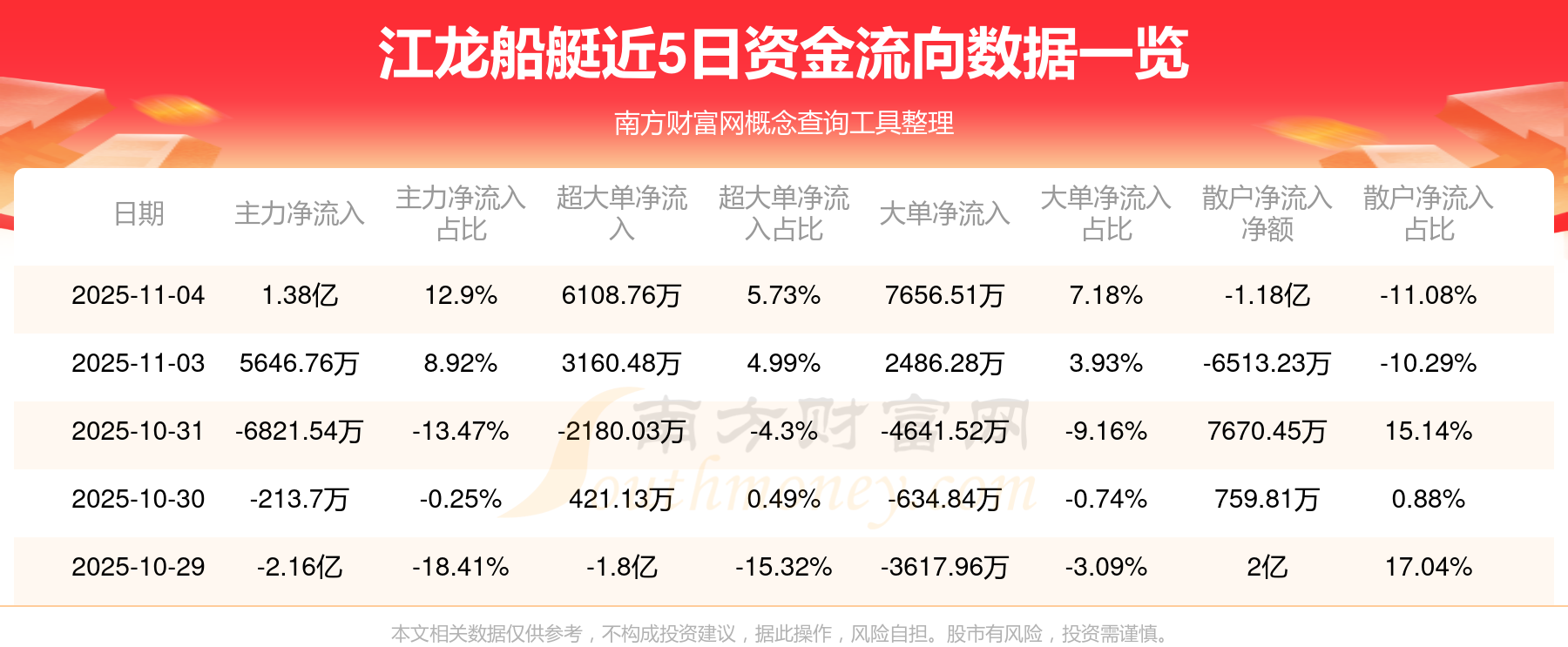 11月4日该股主力资金净流入1.38亿元,超大单资金净流入6108.76万元,大单资金净流入7656.51万元,中单资金净流出1939.21万元,散户资金净流出1.18亿元。