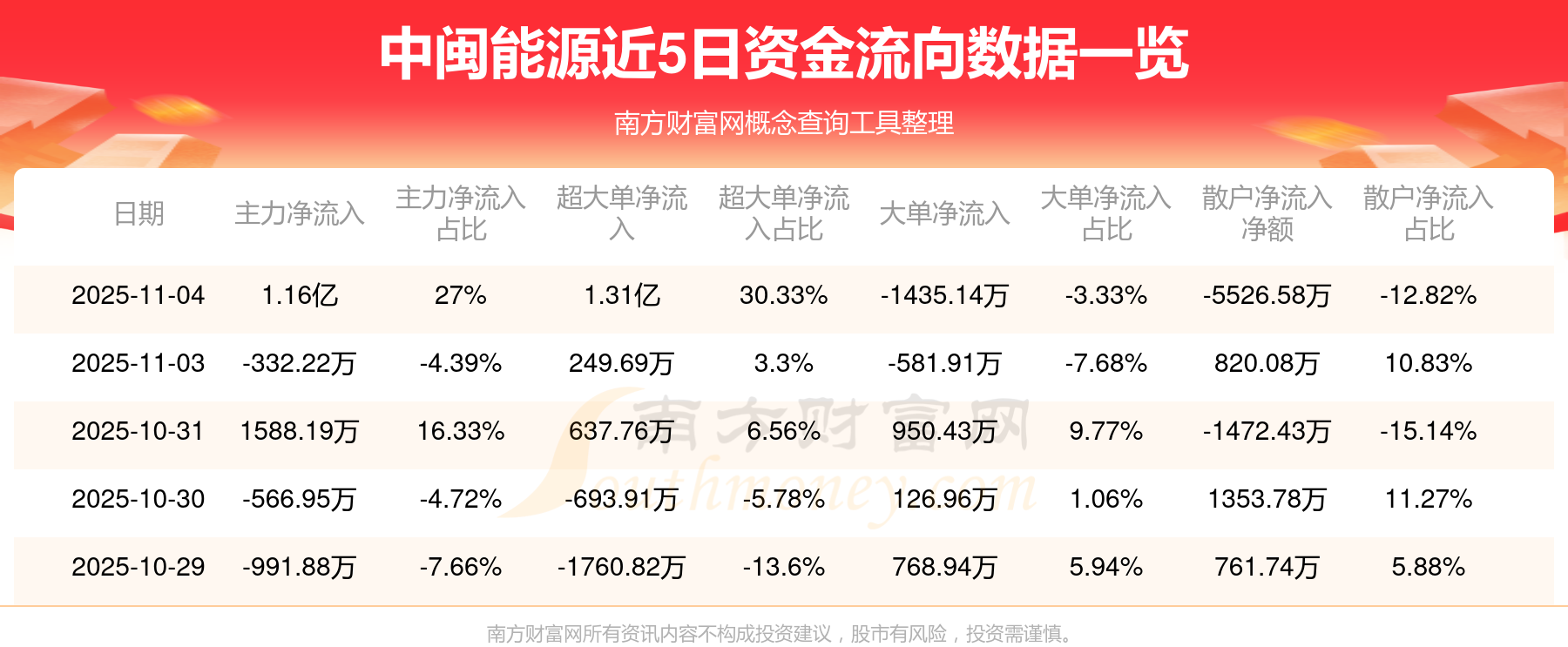 11月4日该股主力净入1.16亿元,其中资金流入方面:超大单净入1.93亿元,大单净入1.03亿元,中单净入7898.12万元,散户净入5514.58万元;资金流出方面:超大单净出6262.68万元,大单净出1.17亿元,中单净出1.4亿元,散户净出1.1亿元。