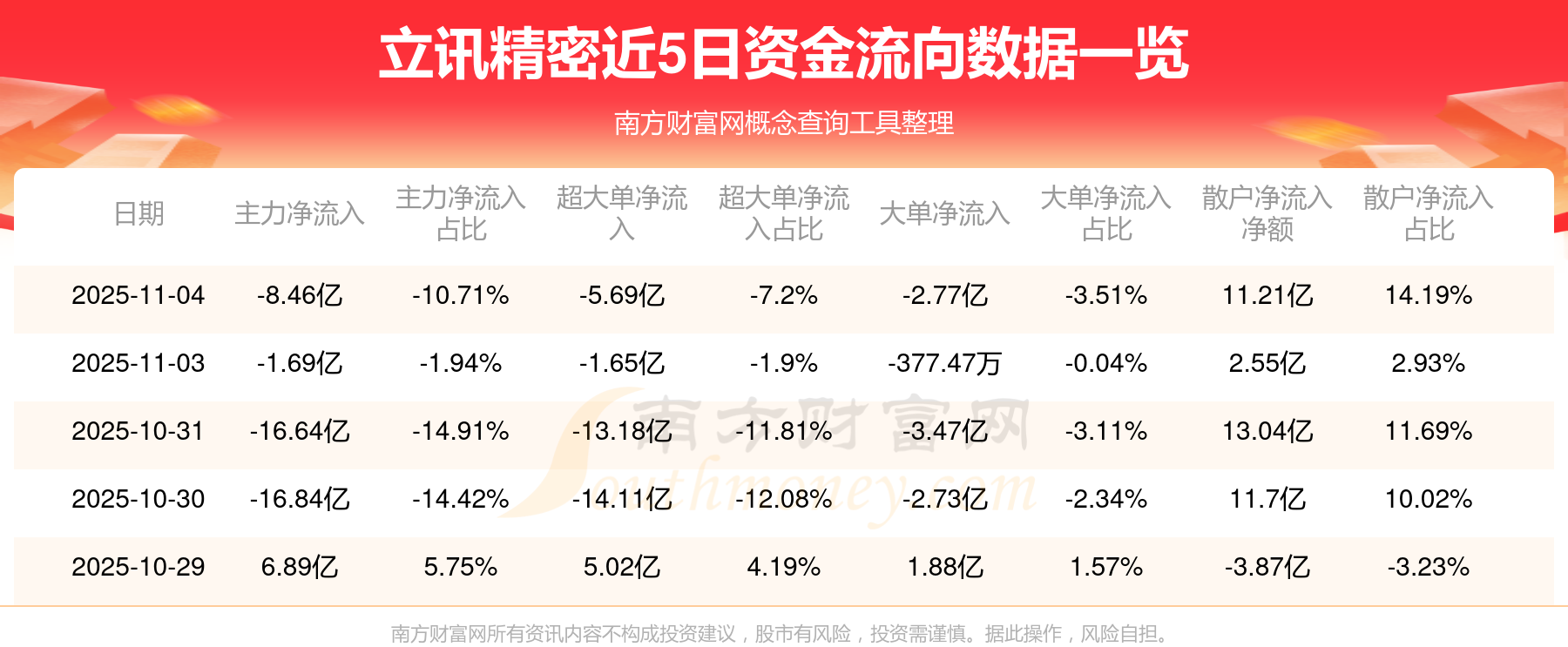 11月4日该股主力净流出8.46亿元,超大单净流出5.69亿元,大单净流出2.77亿元,中单净流出2.75亿元,散户净流入11.21亿元。