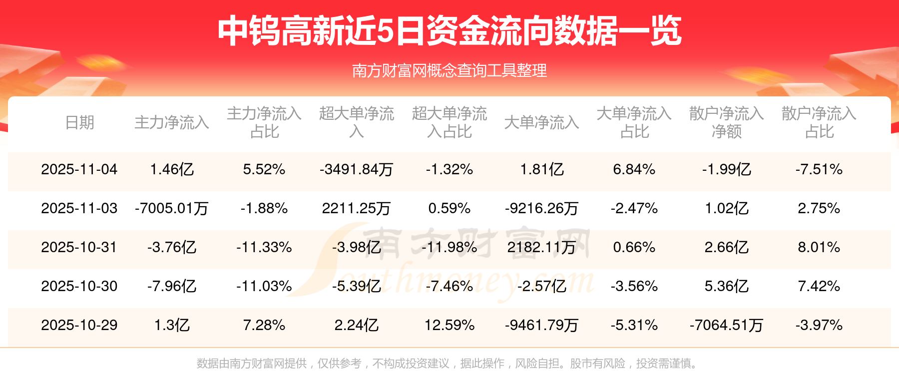 资金流向数据方面,11月4日主力资金净流流入1.46亿元,超大单资金净流出3491.84万元,大单资金净流入1.81亿元,散户资金净流出1.99亿元。