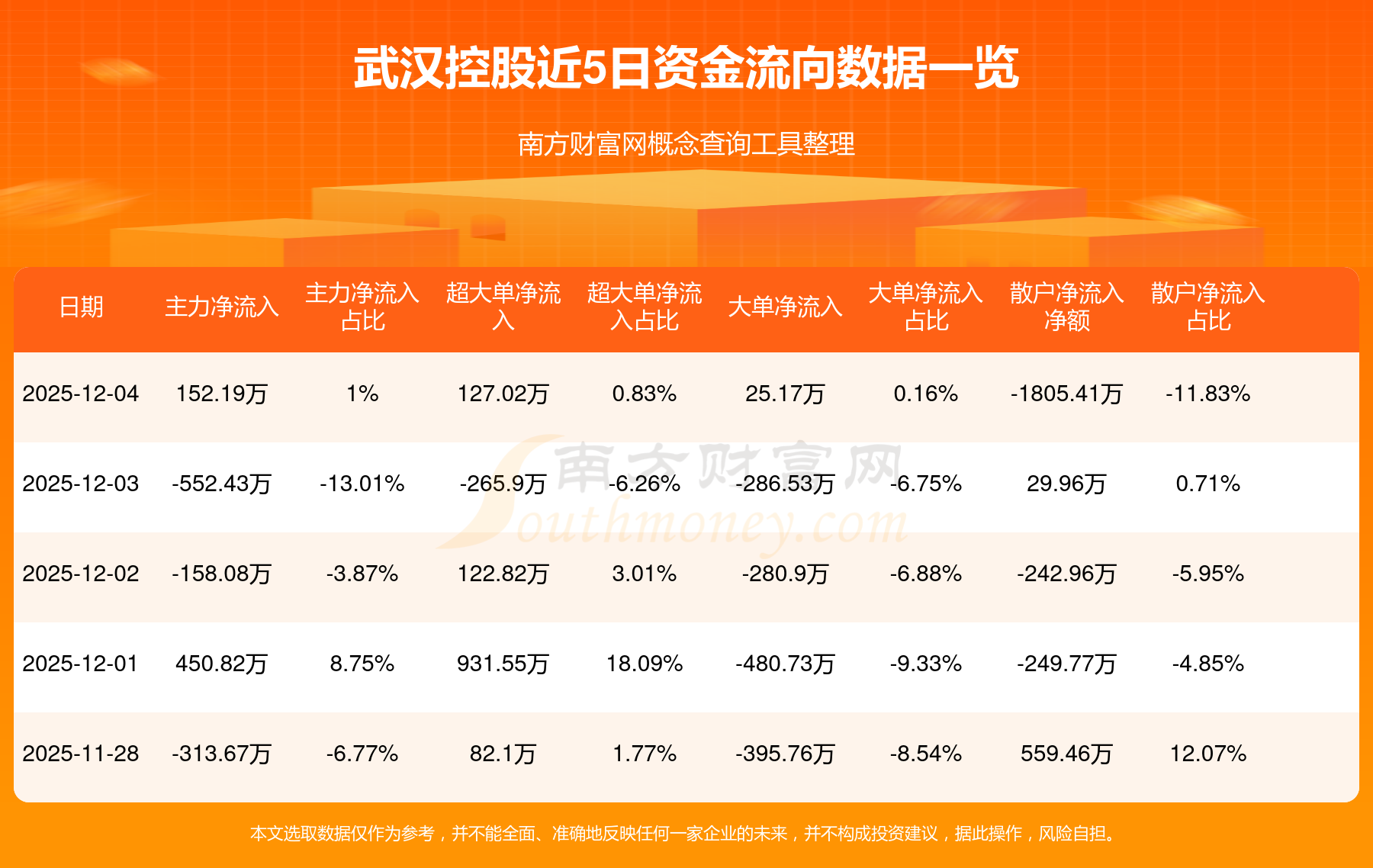 12月4日该股主力资金净流入152.19万元,超大单资金净流入127.02万元,大单资金净流入25.17万元,中单资金净流入1653.22万元,散户资金净流出1805.41万元。