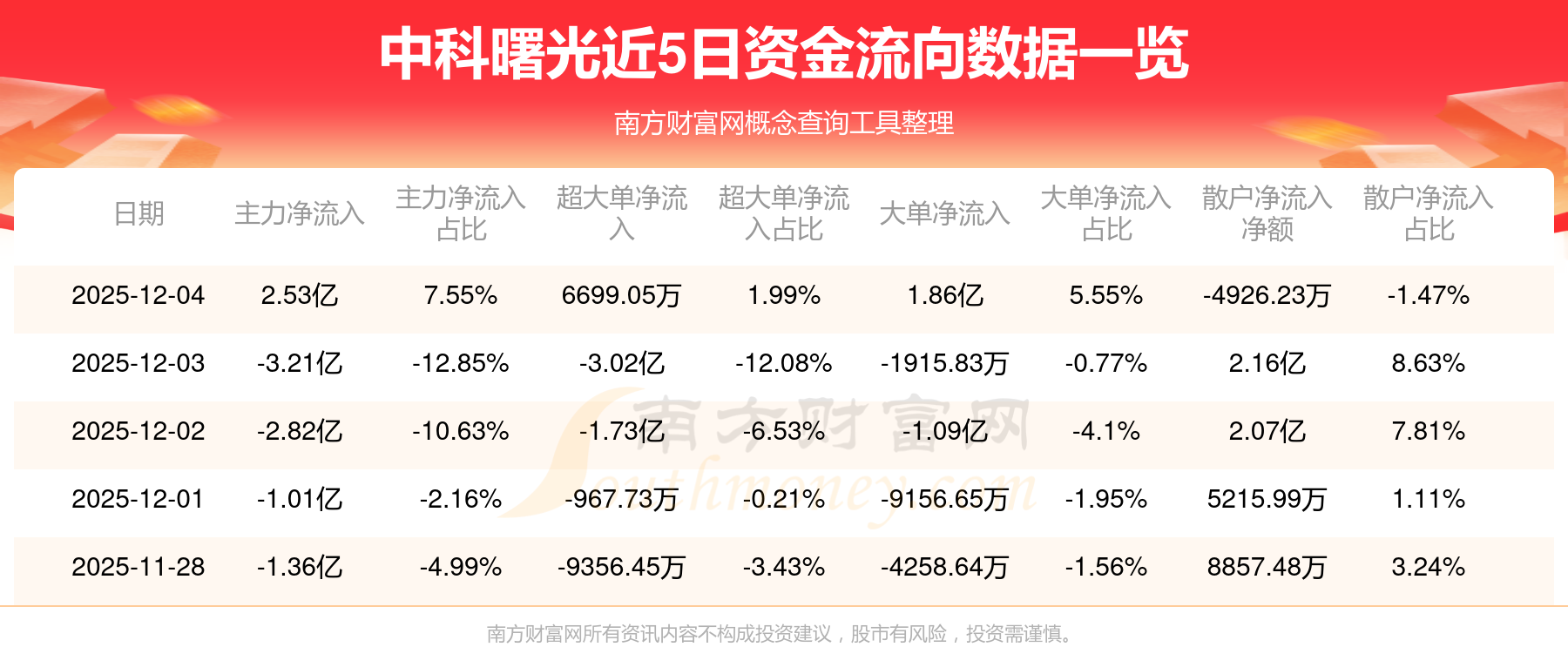 12月4日消息,中科曙光资金净流入2.53亿元,超大单资金净流入6699.05万元,换手率2.34%,成交金额33.58亿元。