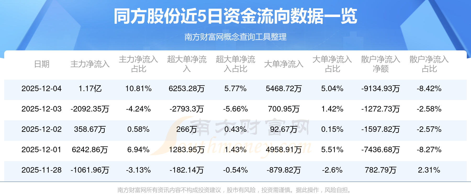 12月4日该股主力资金净流入1.17亿元,超大单资金净流入6253.28万元,大单资金净流入5468.72万元,中单资金净流出2587.07万元,散户资金净流出9134.93万元。