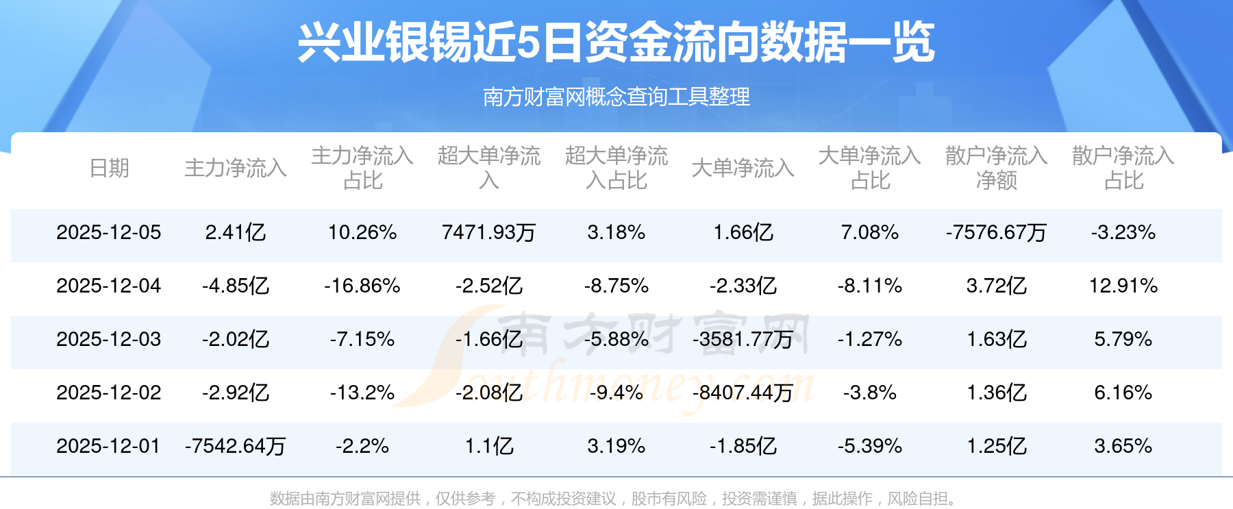 12月5日资金净流入2.41亿元,超大单净流入7471.93万元,换手率3.8%,成交金额23.49亿元。