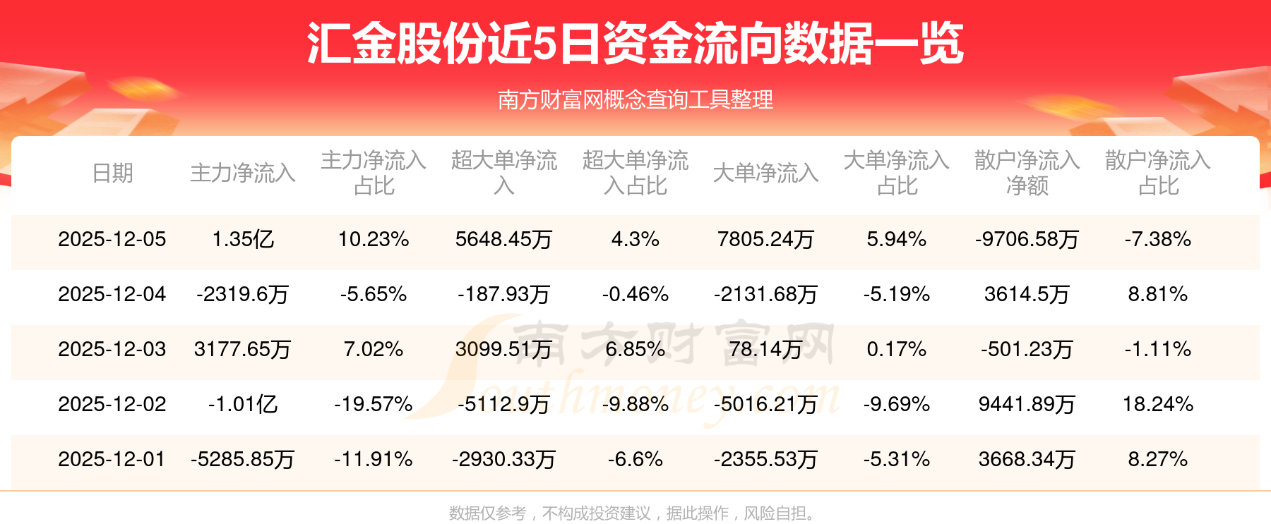近5日资金流向一览见下表: