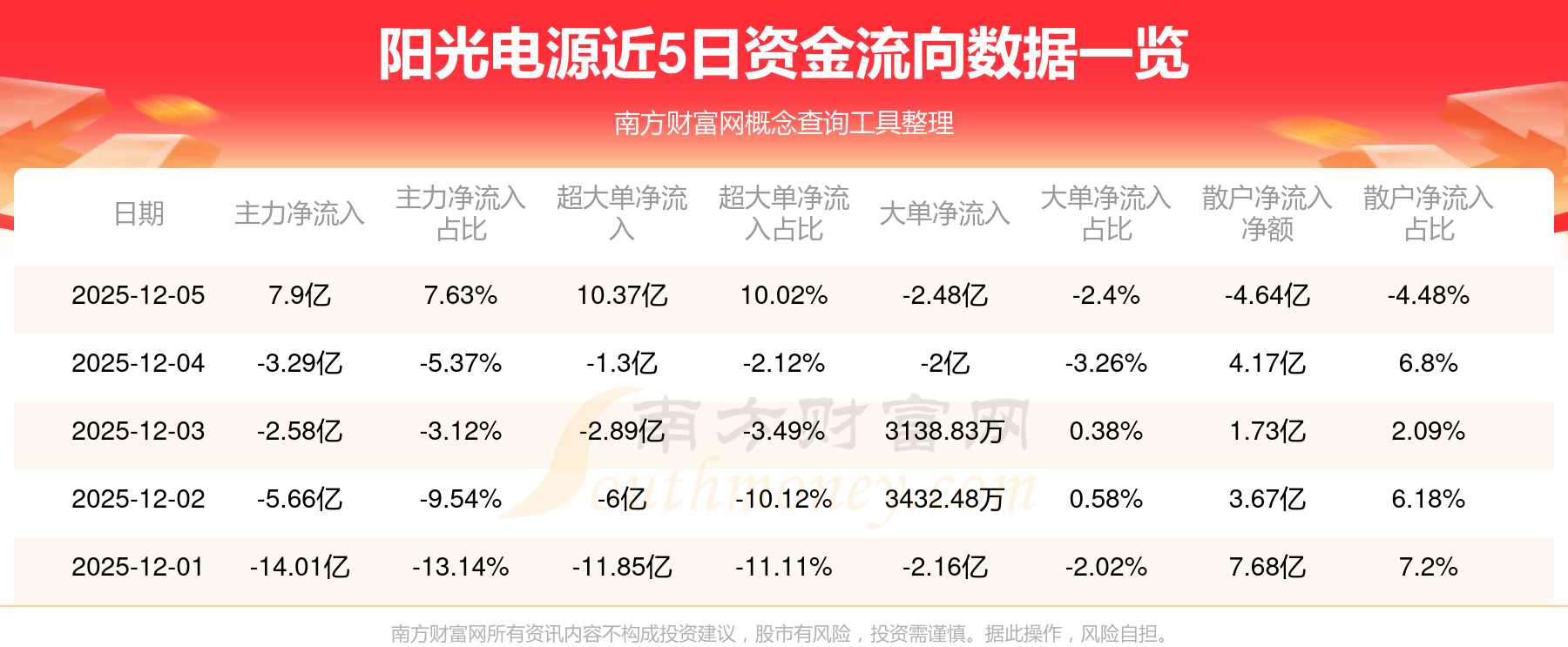 近5日资金流向一览见下表: