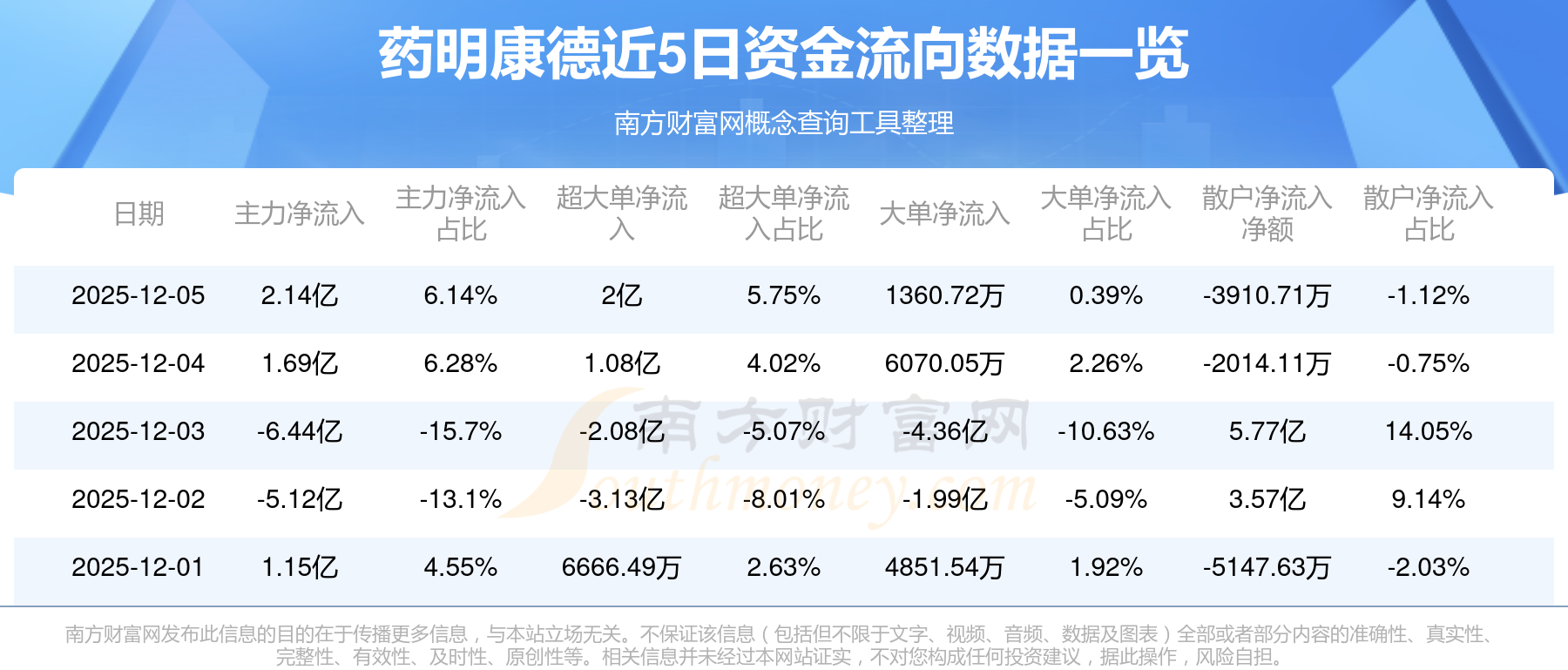 12月5日消息,药明康德资金净流入2.14亿元,超大单净流入2亿元,换手率1.55%,成交金额34.77亿元。