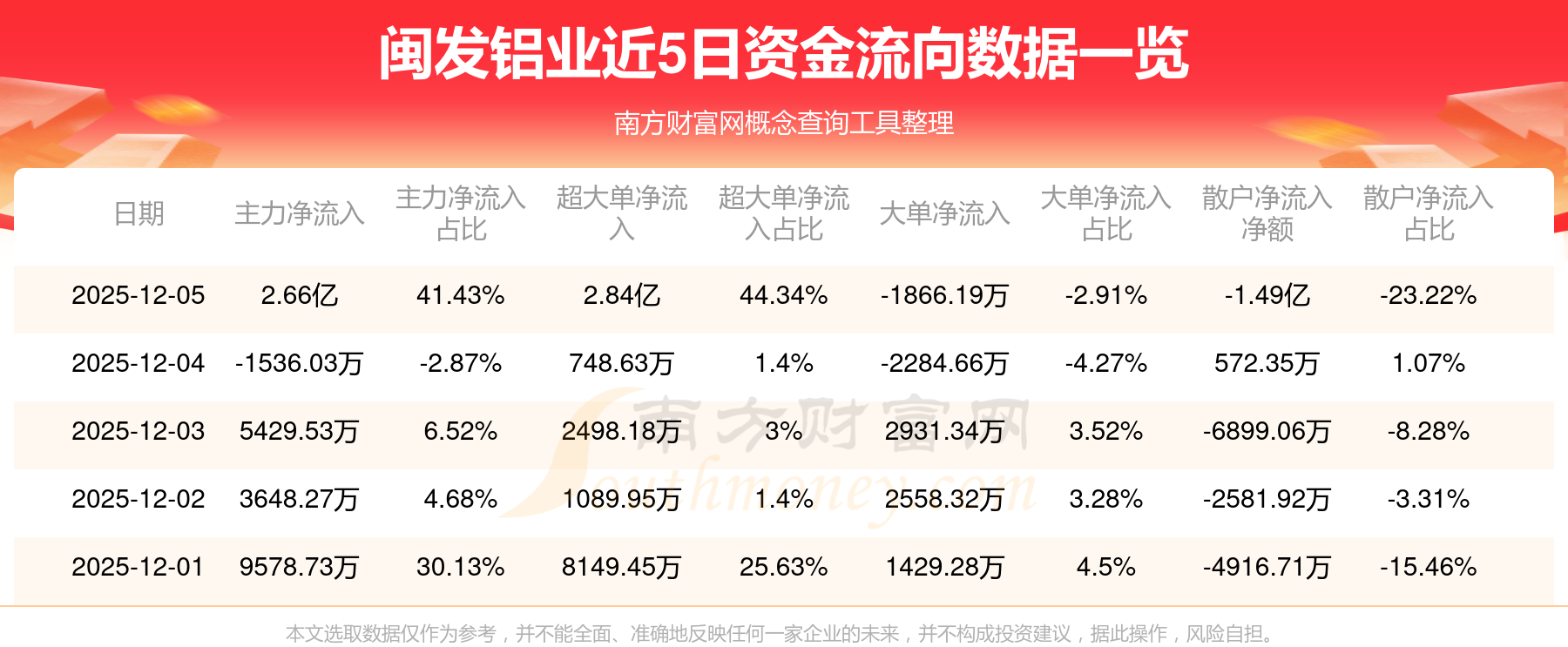 南方财富网12月5日讯,闽发铝业股价涨9.98%,截至收盘报4.960元,市值46.56亿元。盘中股价最高价4.96元,最低达4.47元,成交量1.33亿手。