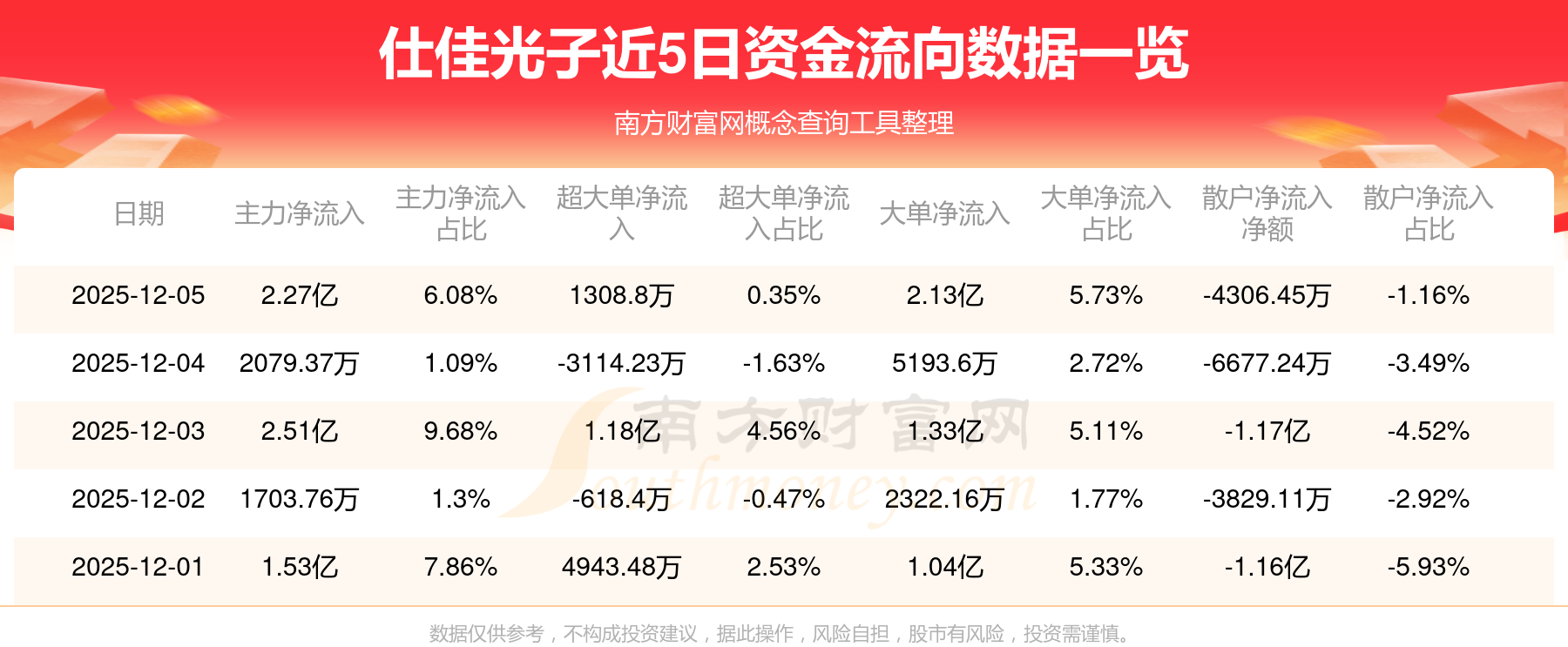 资金流向数据方面,12月5日主力资金净流流入2.27亿元,超大单资金净流入1308.8万元,大单资金净流入2.13亿元,散户资金净流出4306.45万元。