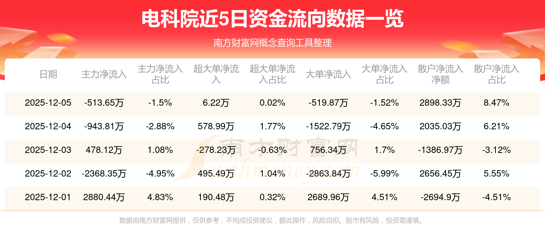 近5日资金流向一览见下表: