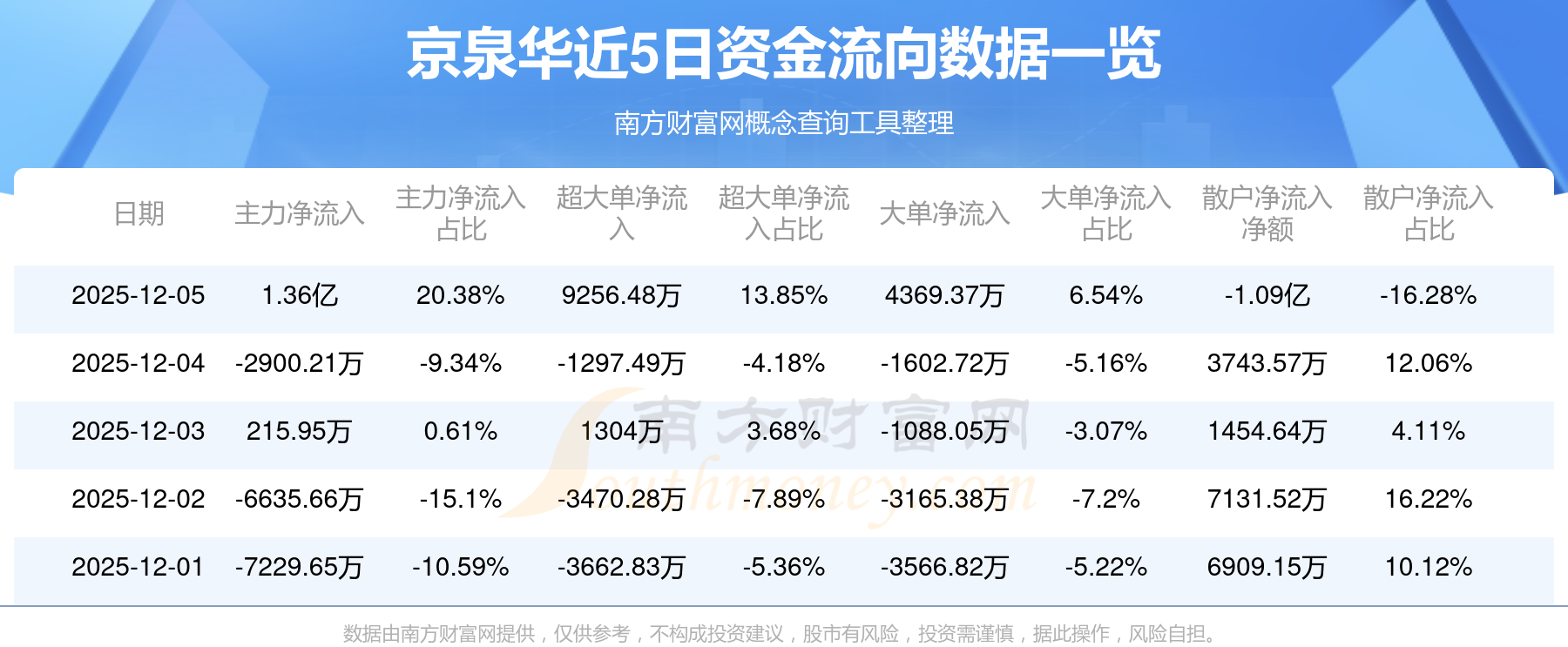 12月5日消息,京泉华资金净流入1.36亿元,超大单资金净流入9256.48万元,换手率11.42%,成交金额6.69亿元。