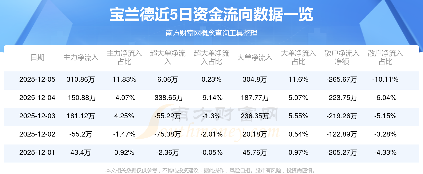 12月5日消息,资金净流入310.86万元,超大单资金净流入6.06万元,成交金额2628.68万元。