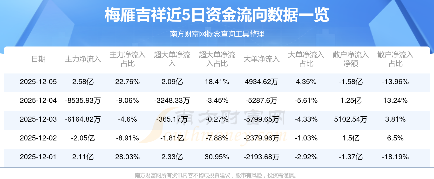 近5日资金流向一览见下表: