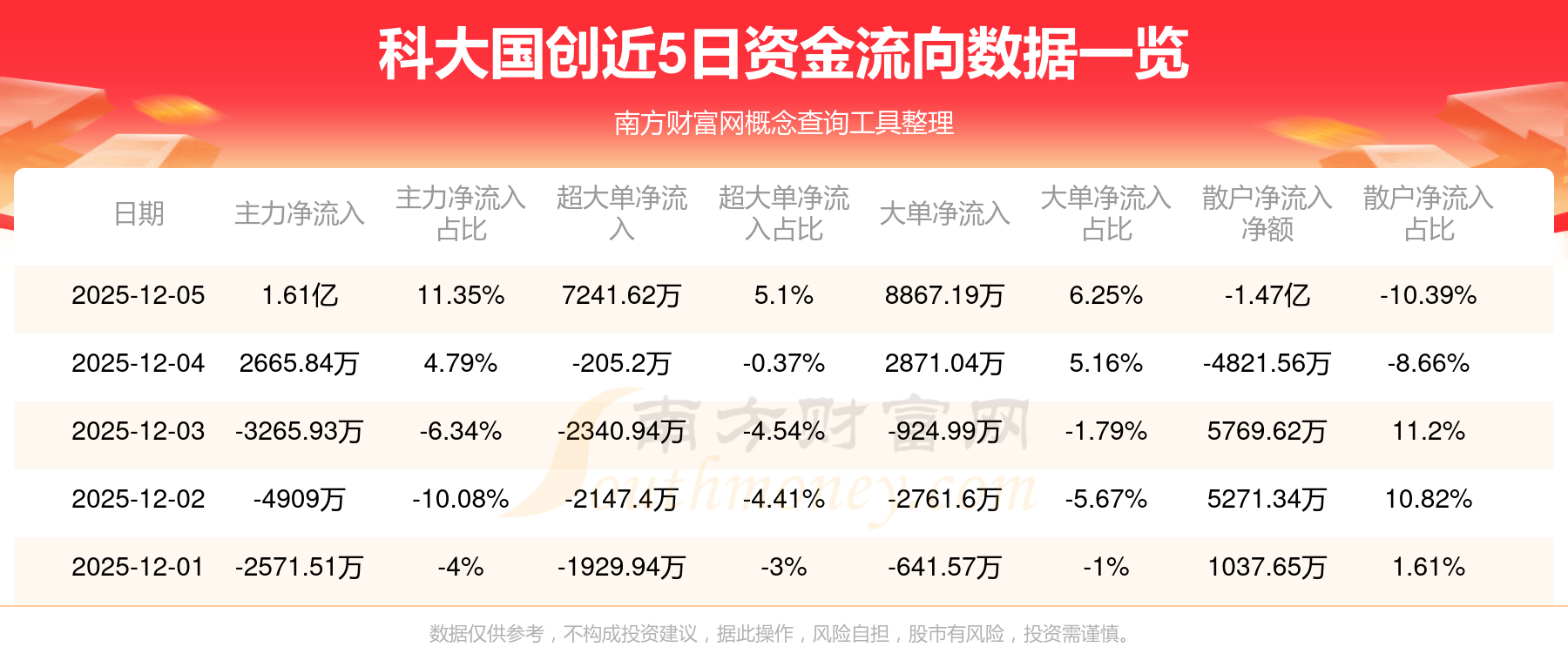 12月5日该股主力净流入1.61亿元,超大单净流入7241.62万元,大单净流入8867.19万元,中单净流出1366.8万元,散户净流出1.47亿元。