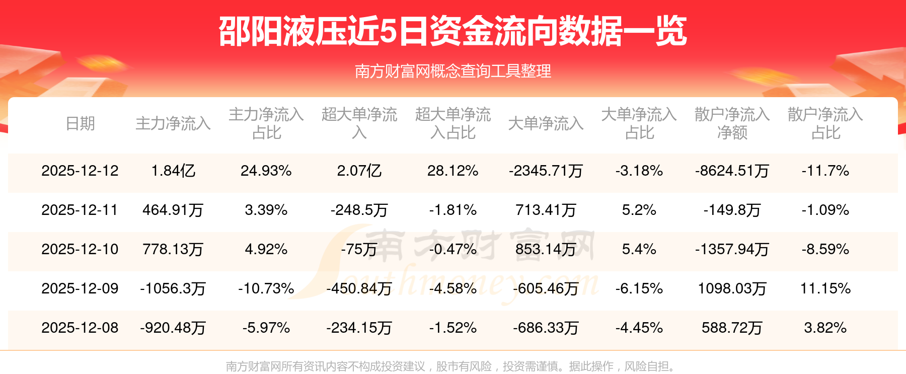 资金流向数据方面,12月12日主力资金净流流入1.84亿元,超大单资金净流入2.07亿元,大单资金净流出2345.71万元,散户资金净流出8624.51万元。