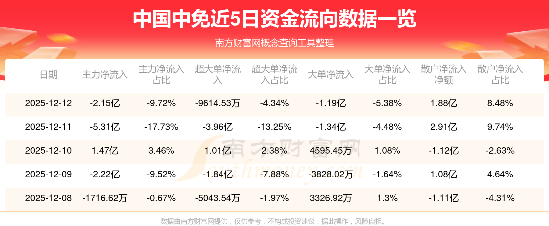 12月12日消息,资金净流出2.15亿元,超大单净流出9614.53万元,成交金额15.31亿元。
