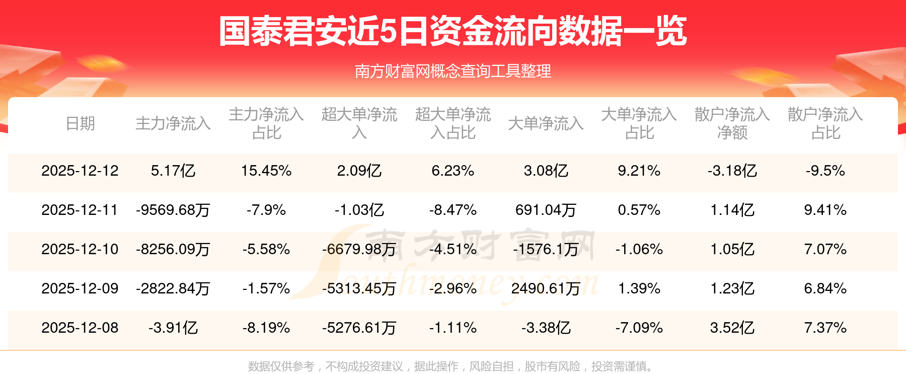 12月12日消息,国泰海通资金净流入5.17亿元,超大单净流入2.09亿元,换手率0.68%,成交金额18.39亿元。