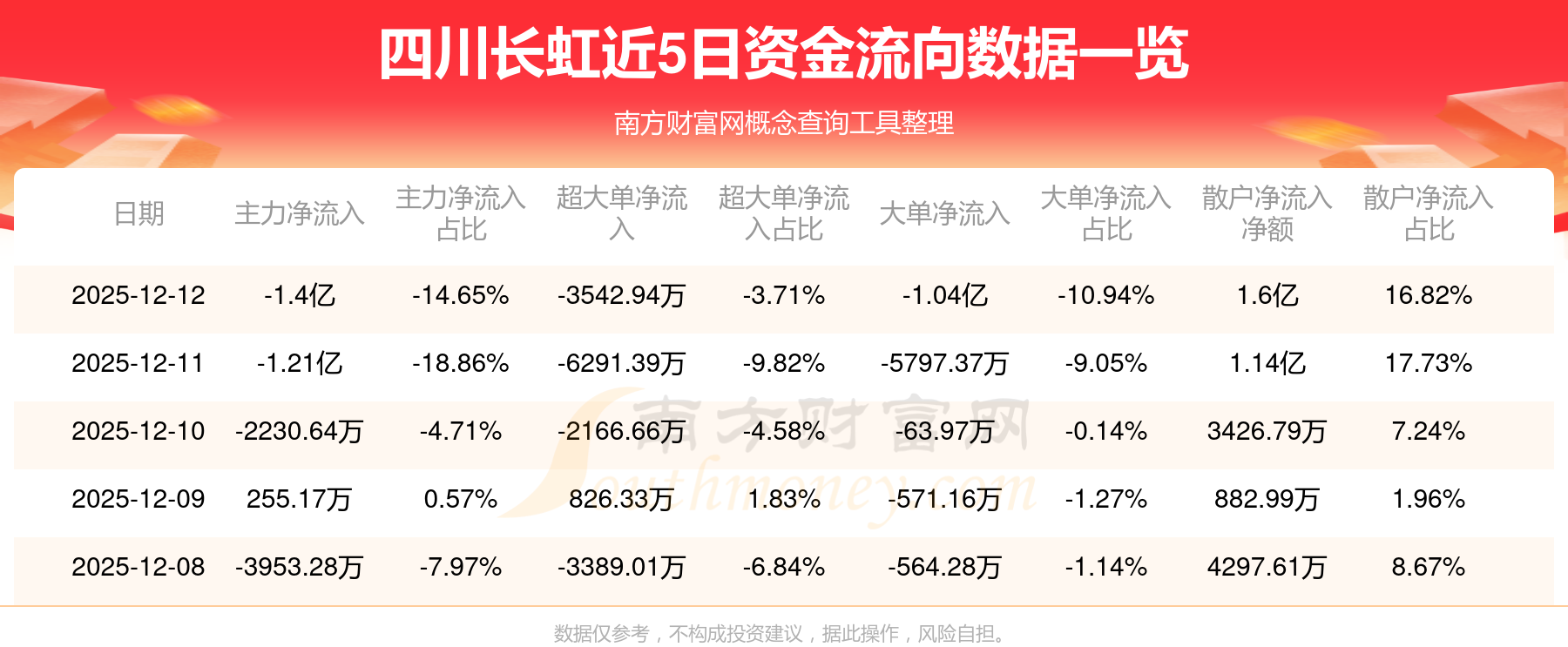 12月12日消息,资金净流出1.4亿元,超大单净流出3542.94万元,成交金额4.38亿元。