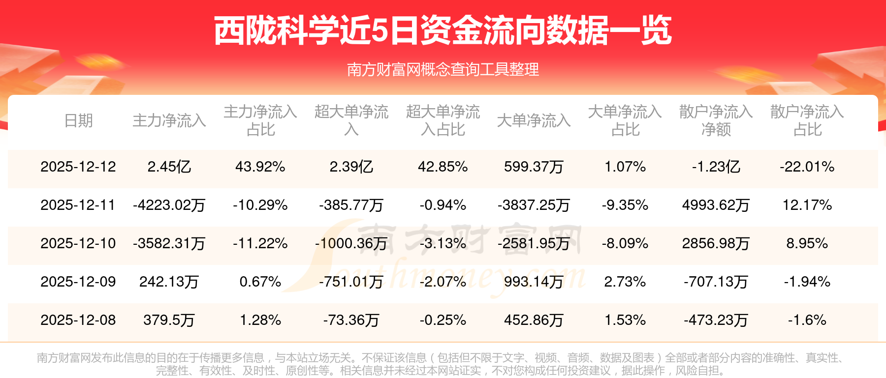 12月12日消息,资金净流入2.45亿元,超大单资金净流入2.39亿元,成交金额5.32亿元。