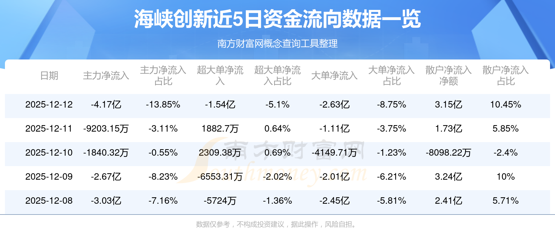 12月12日消息,海峡创新(300300)开盘报17.5元,截至15时收盘,该股跌6.85%报17.430元,换手率17.25% ,成交额19.9亿元。