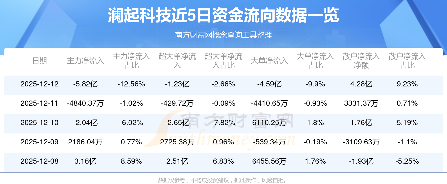 12月12日消息,澜起科技12月12日主力净流出5.82亿元,超大单净流出1.23亿元,大单净流出4.59亿元,散户净流入4.28亿元。