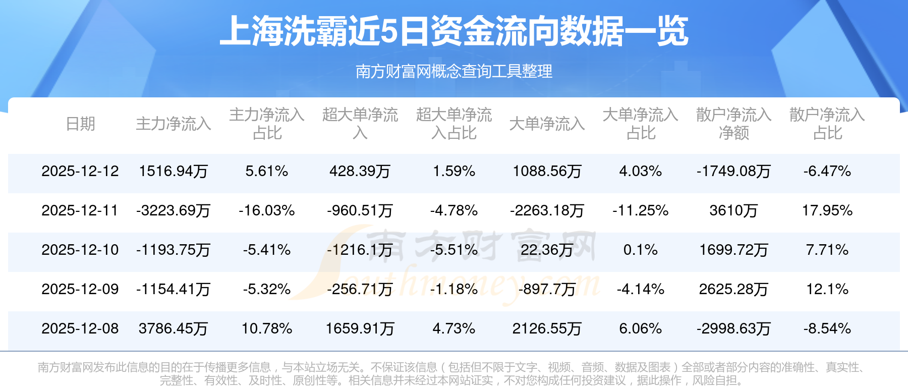 12月12日该股主力资金净流入1516.94万元,超大单资金净流入428.39万元,大单资金净流入1088.56万元,中单资金净流入232.13万元,散户资金净流出1749.08万元。