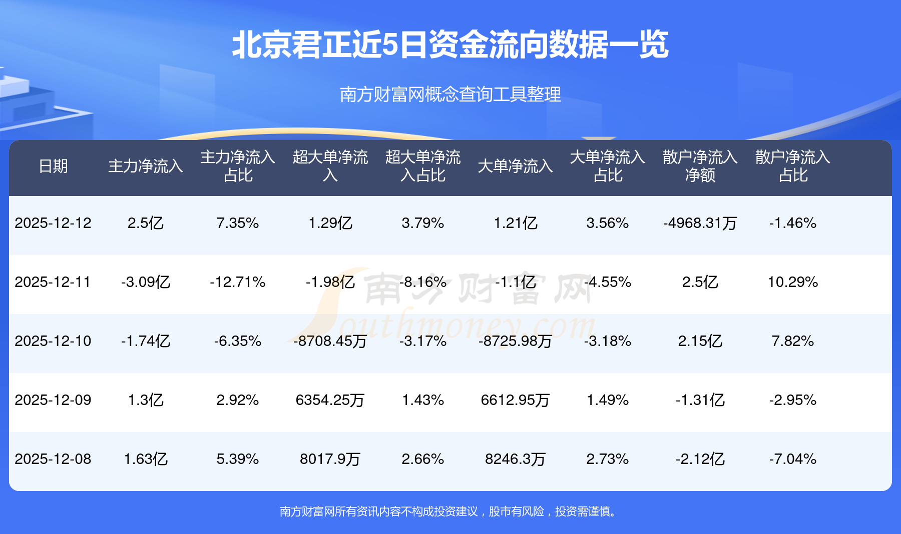 12月12日消息,资金净流入2.5亿元,超大单净流入1.29亿元,成交金额25.5亿元。