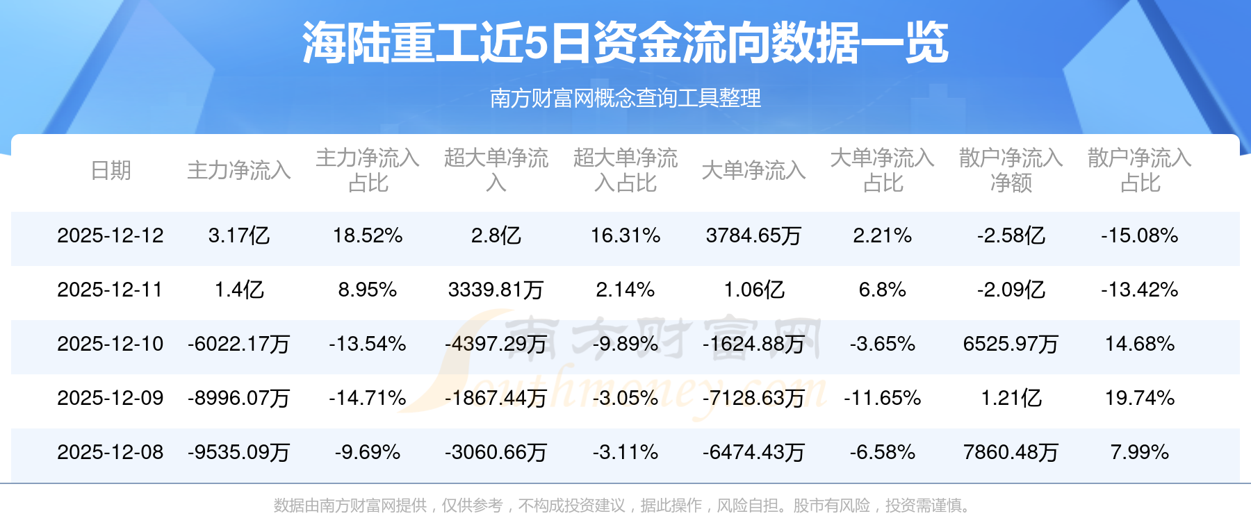 12月12日该股主力净流入3.17亿元,超大单净流入2.8亿元,大单净流入3784.65万元,中单净流出5901.01万元,散户净流出2.58亿元。