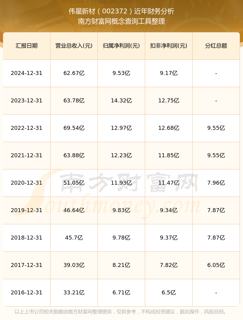 2024年伟星新材总营收62.67亿,同比增长-1.75%;净利润9.53亿,同比增长-33.49%;销售毛利率41.72%。