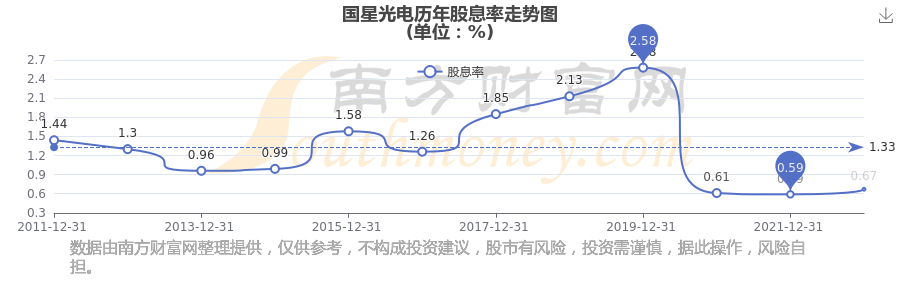 近年国星光电年度股息率走势如下图: