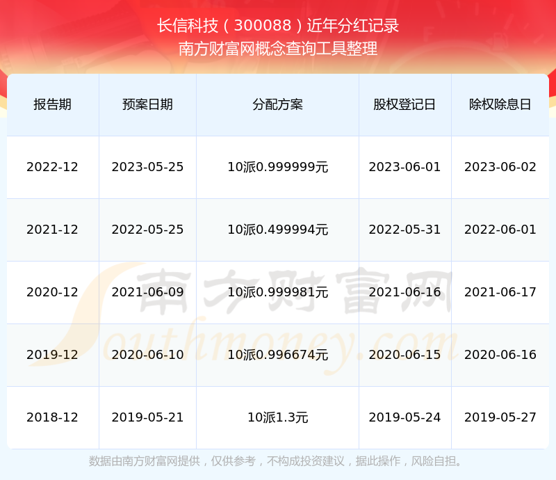 长信科技最新一次公布的分红方案为10派0.999999元。本次权益分派股权登记日为2023年6月1日,除权除息日为2023年6月2日,派息日为2023年6月2日。