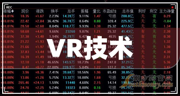 据南方财富网概念库数据显示,VR技术题材公司有: