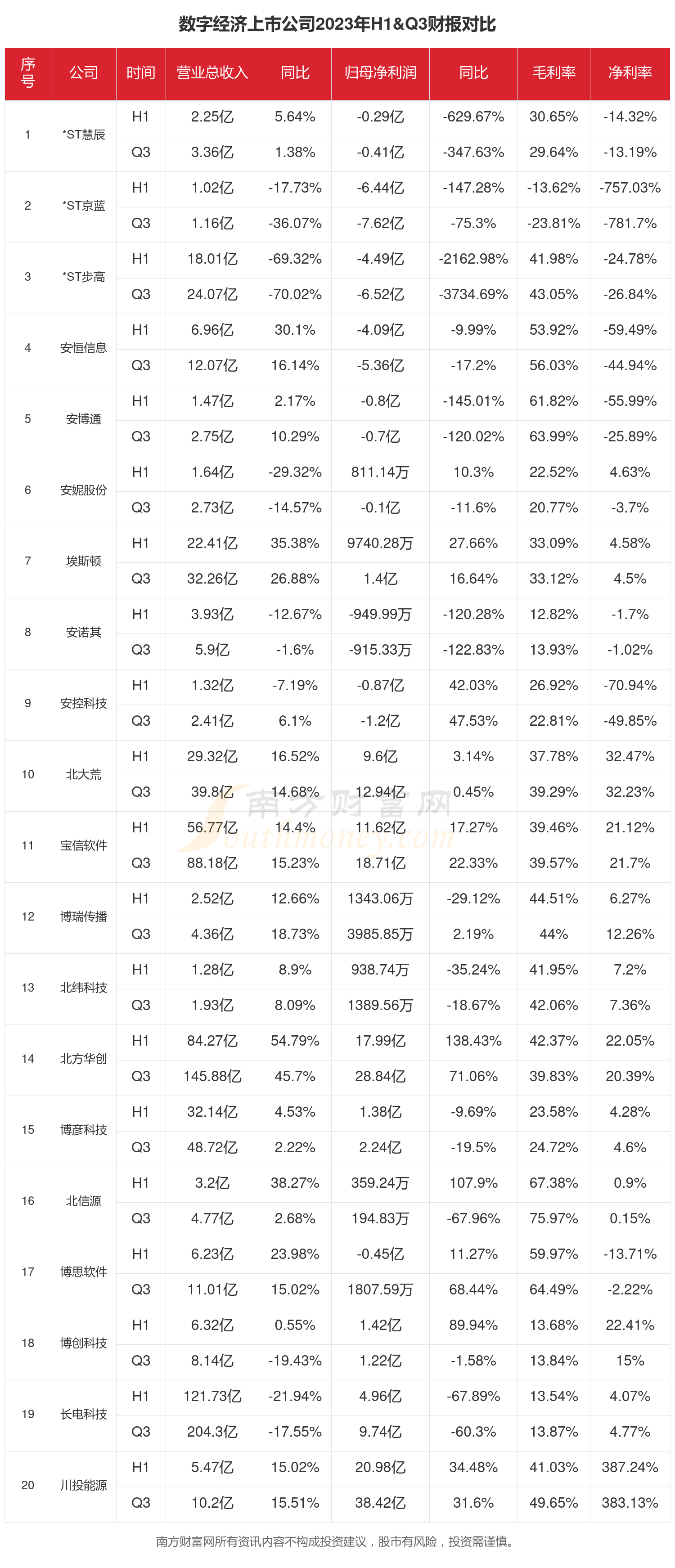 数字经济行业现状:2023年前三季度相关上市公司财报对比