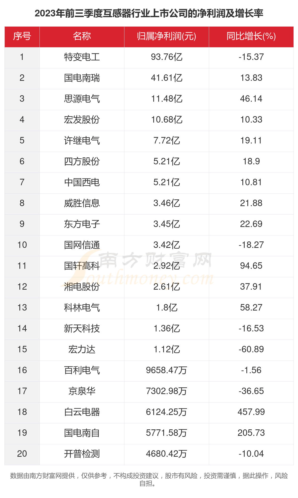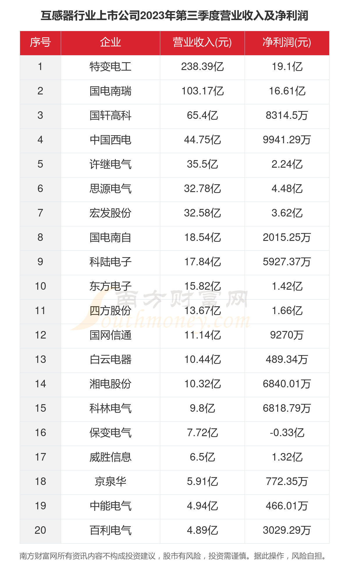 二、2023年前三季度互感器总净利润198.94亿元亿元!