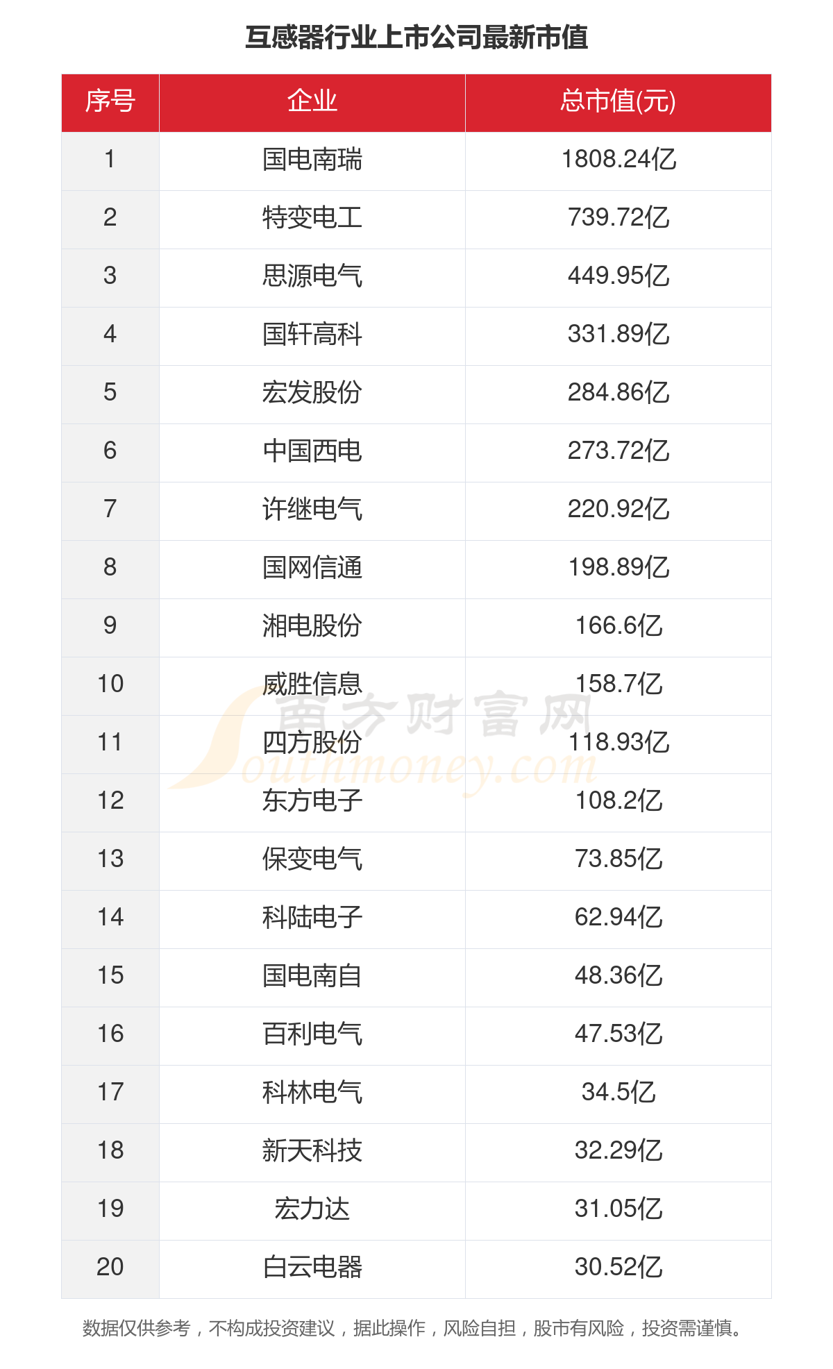 根据2月8日的收盘价格,A股29家互感器行业上市公司的当前总市值合计为5412.34亿元。其中,市值最高的三家互感器行业上市公司为:国电南瑞、特变电工、思源电气。