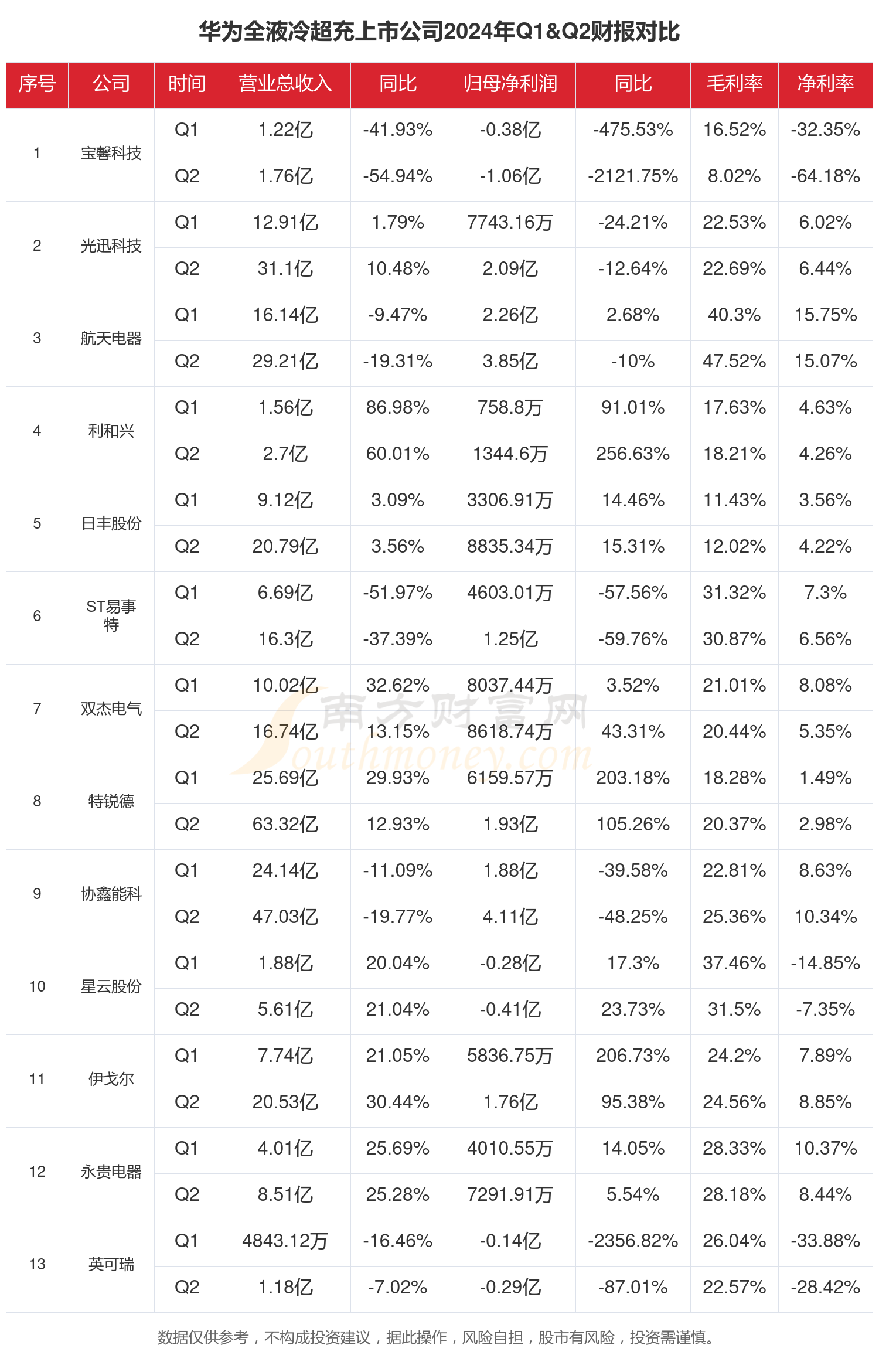 2024年上半年财报:华为全液冷超充行业上市公司现状如何?