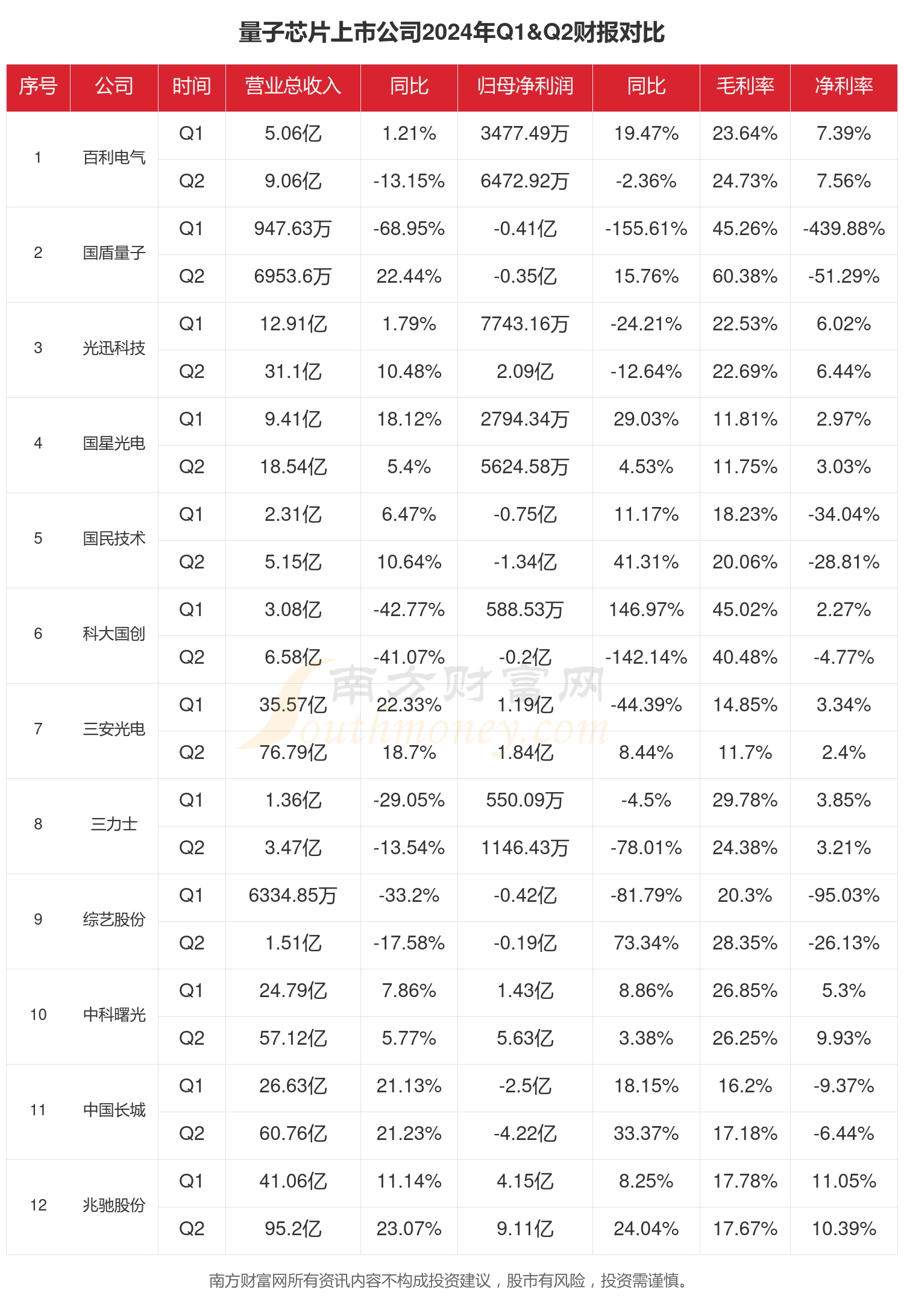 量子芯片行业现状:2024年上半年相关上市公司财报对比