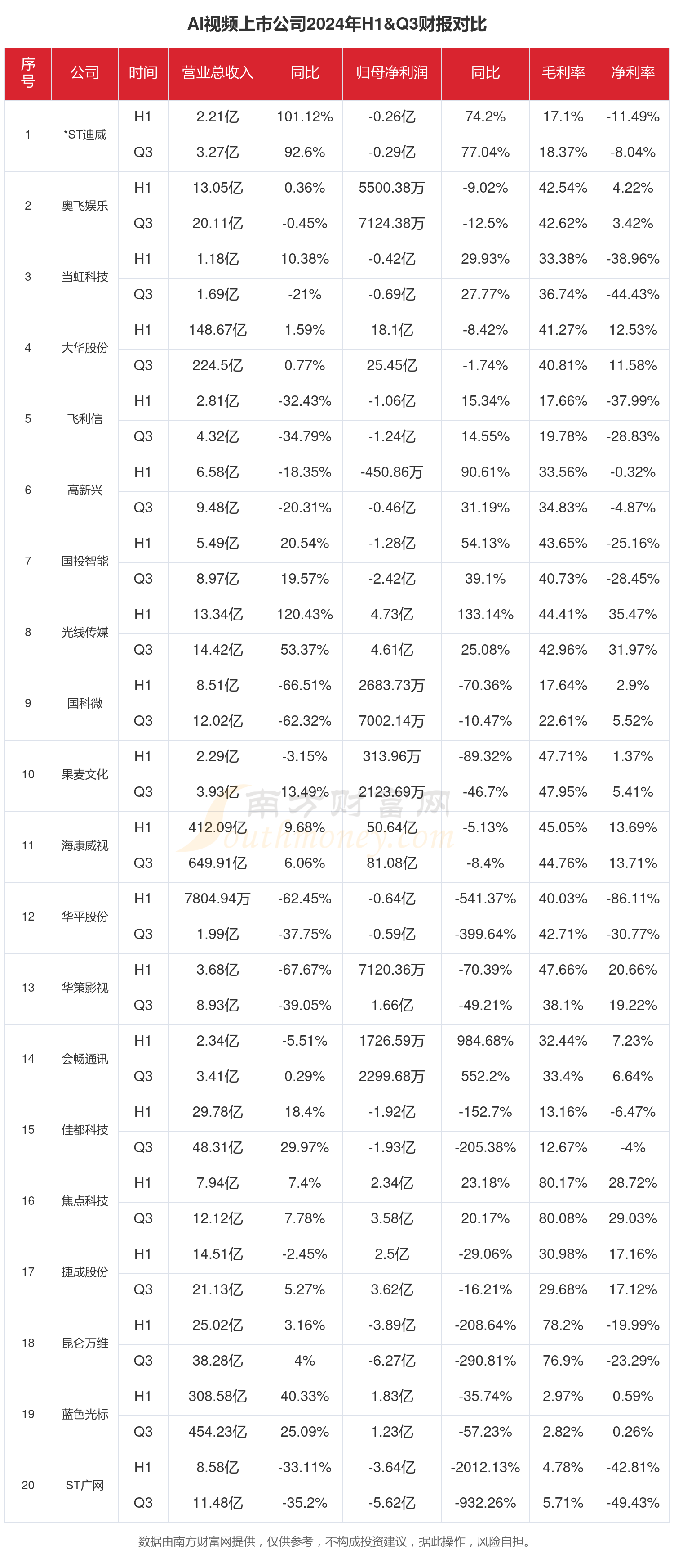 根据南方财富网概念查询工具数据统计,A股31家AI视频相关上市公司已发布2024年前三季度财报。2024年前三季度大家都过得怎么样?一起来看看吧。