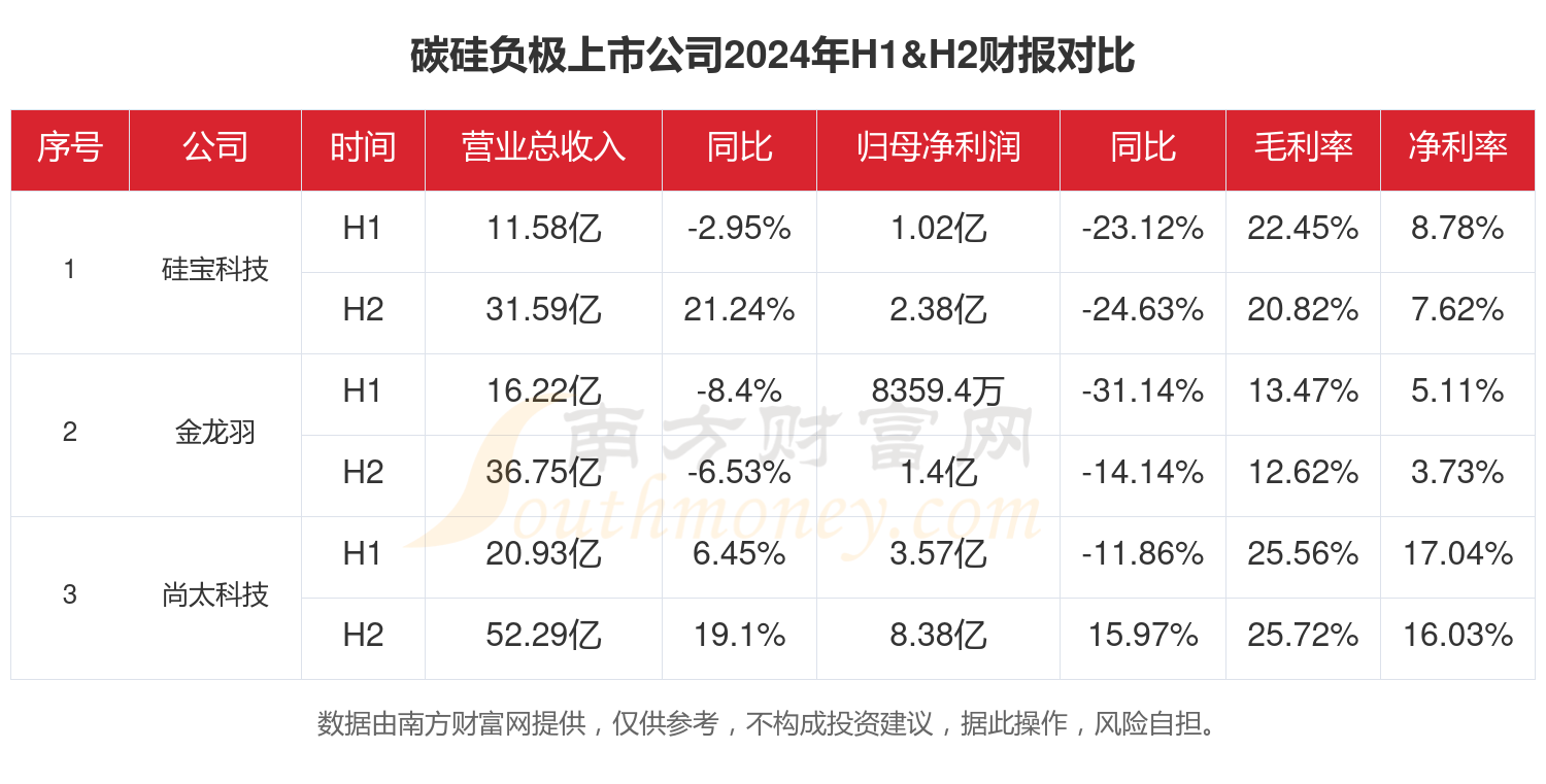 根据南方财富网概念查询工具数据统计,A股11家碳硅负极相关上市公司已发布2024年全年财报。2024年全年大家都过得怎么样?一起来看看吧。