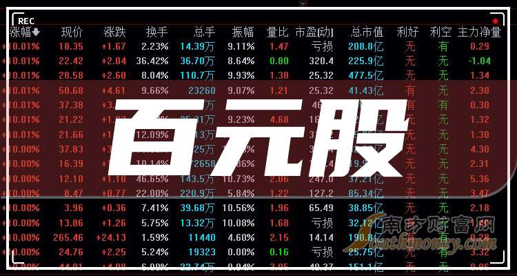 据南方财富网概念查询工具数据显示,百元股公司有: