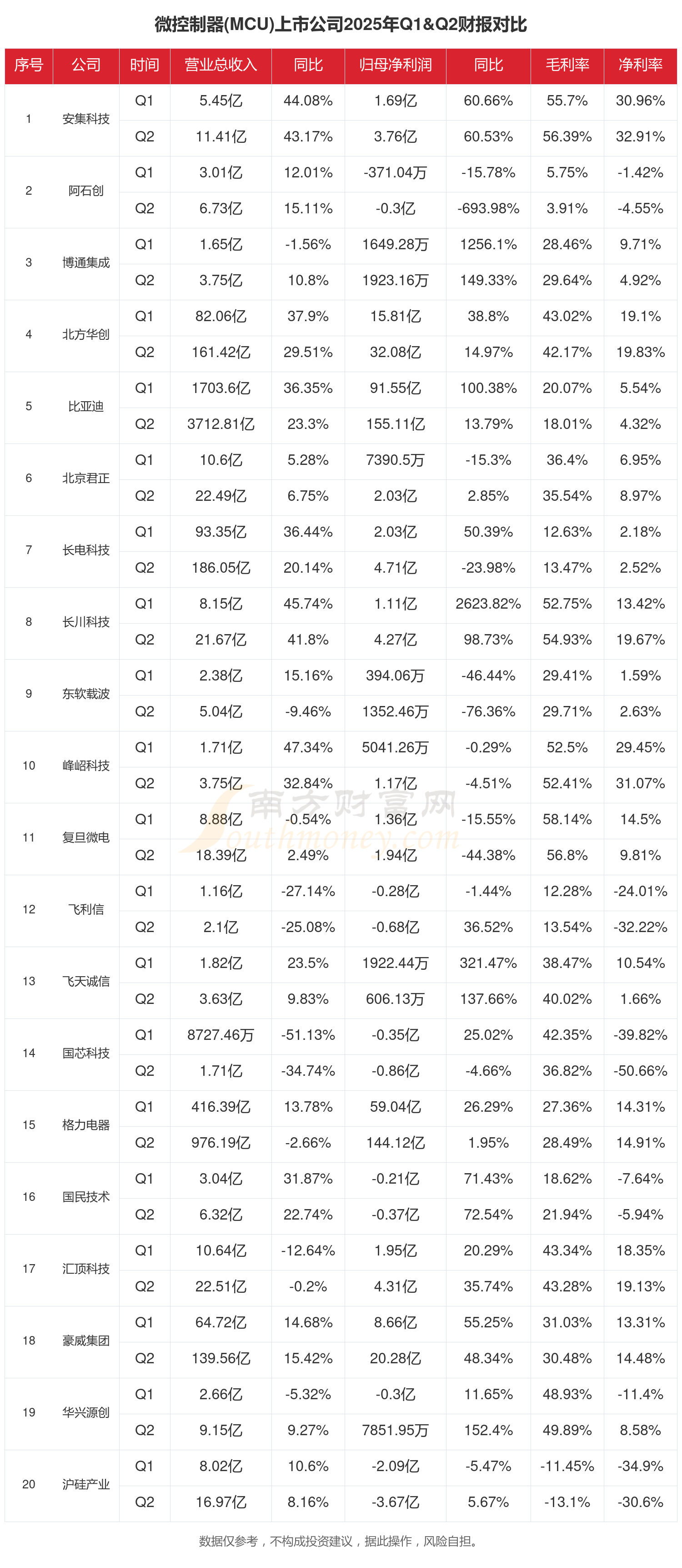 根据南方财富网概念查询工具数据统计,A股71家微控制器(MCU)相关上市公司已发布2025年上半年财报。2025年上半年大家都过得怎么样?一起来看看吧。