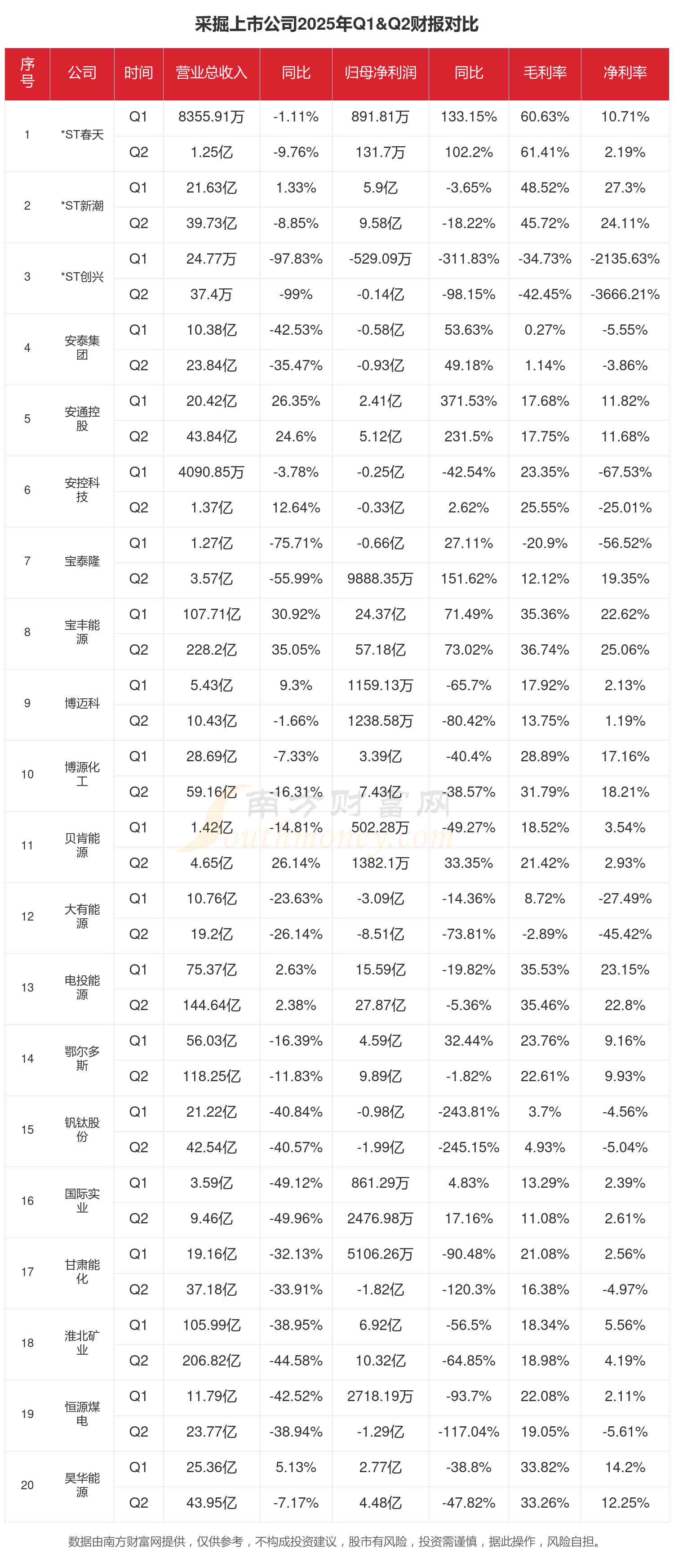 根据南方财富网概念查询工具数据统计,A股77家采掘相关上市公司已发布2025年上半年财报。2025年上半年大家都过得怎么样?一起来看看吧。